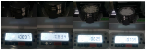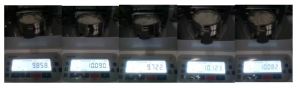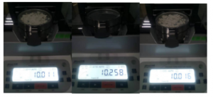 - 將防風盤、支架、樣品盤一一裝好,接通電源,按下開機鍵,顯示屏進入開機界面,首先按去皮鍵減去樣品盤重量,后將100g砝碼放入托盤進行校準;