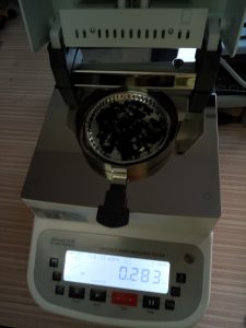 為了得到更精確穩(wěn)定的數(shù)據(jù)結(jié)果,在進(jìn)行第二次測(cè)試過(guò)程前先等待電池粉末水分儀降溫,待水分儀本身冷卻至40度以下時(shí),這次我們?nèi)?克多電池粉末就好,將電池粉末平鋪均勻,這次我們把溫度降至135℃,按“START”鍵開(kāi)始測(cè)試,1分33秒后檢測(cè)結(jié)束,檢測(cè)數(shù)據(jù)顯示283%;
