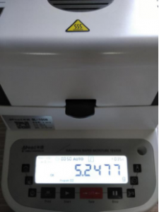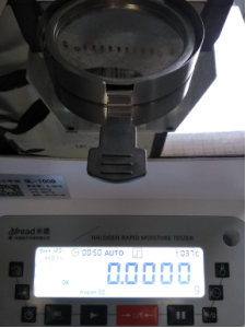 第一次測(cè)量,測(cè)試時(shí)間10分06秒,溫度105℃,水分0.806%